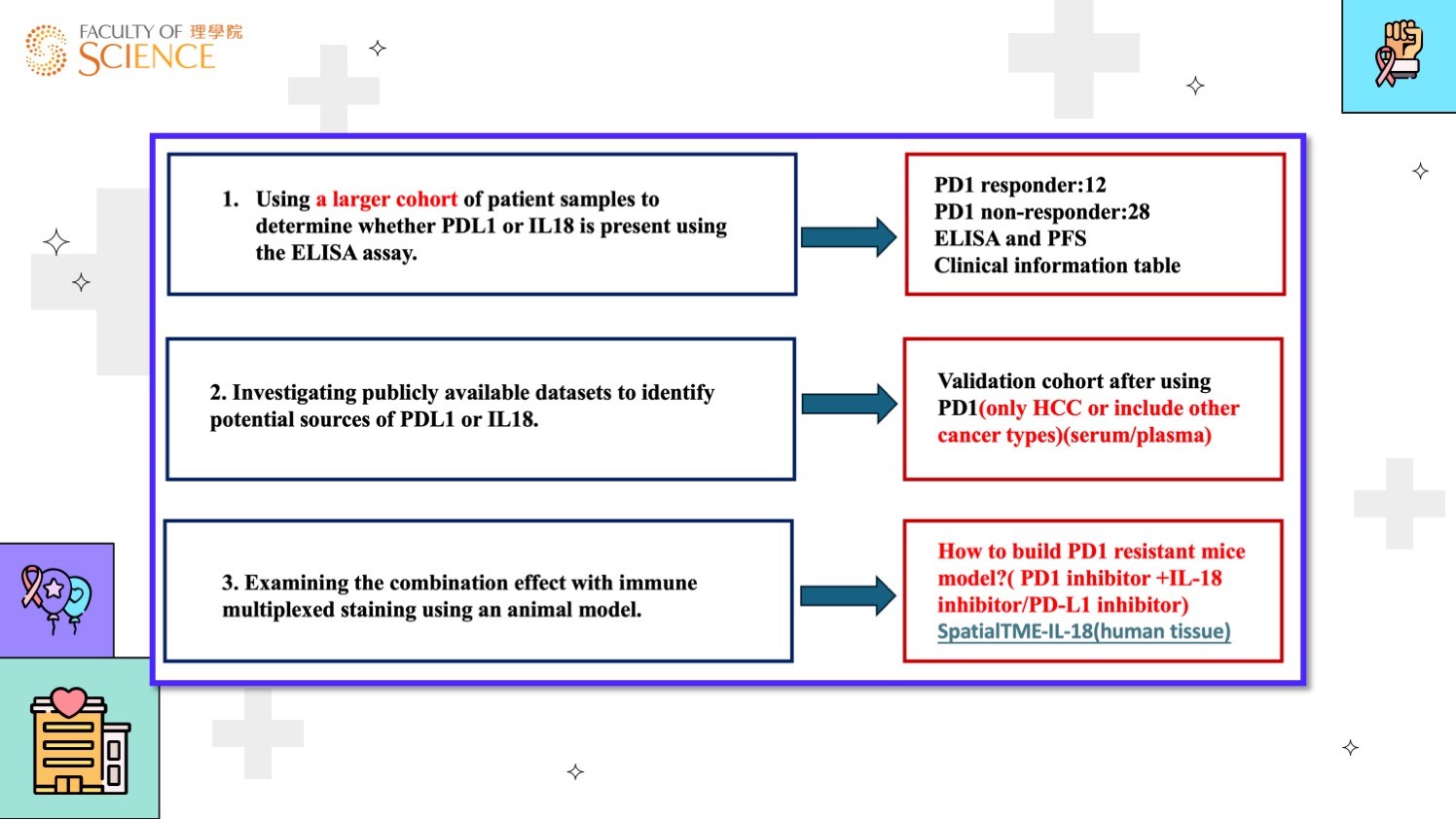 Vivian Qin’s research aimed to improve outcomes for Hepatocellular Carcinoma (HCC) patients who do not respond to PD-1 immunotherapy. She developed a bispecific antibody targeting PD-L1 and IL-18, motivated by patient data showing these molecules’ role in resistance. Vivian encountered difficulties in antibody formation, but with her supervisor’s support and PolyU’s resources, she improved the binding ratio from 20% to 46%. The project provided valuable hands-on experience in mass spectrometry and antibody design, and taught Vivian to persist through setbacks. She developed patience, problem-solving skills, and the ability to collaborate effectively—qualities vital for success in biotech. Although the project continues in her supervisor’s lab, Vivian’s journey transformed her theoretical knowledge into practical expertise and gave her confidence to face future challenges in academia and industry.