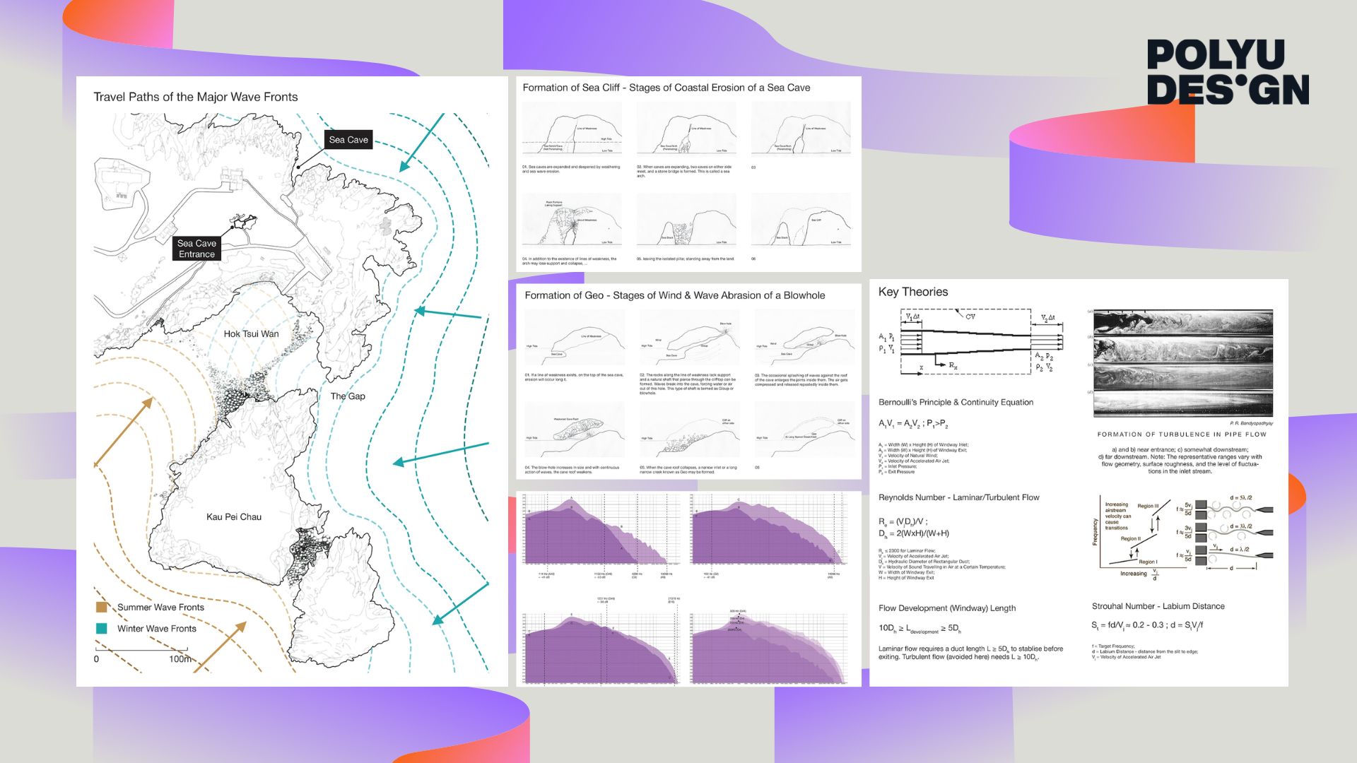 Coco demonstrated advanced information literacy by synthesizing data from vastly different fields. Because the Thunder Cave lacked documentation, she conducted primary research through repetitive site visits, sketching, and cave surveying. She then combined this with secondary contextual data from the Hong Kong Government. Furthermore, she stepped into the fields of **geology and physics**, studying Helmholtz resonance and the mechanics of wind instruments to ensure her architectural design was grounded in scientific reality rather than just aesthetic choice