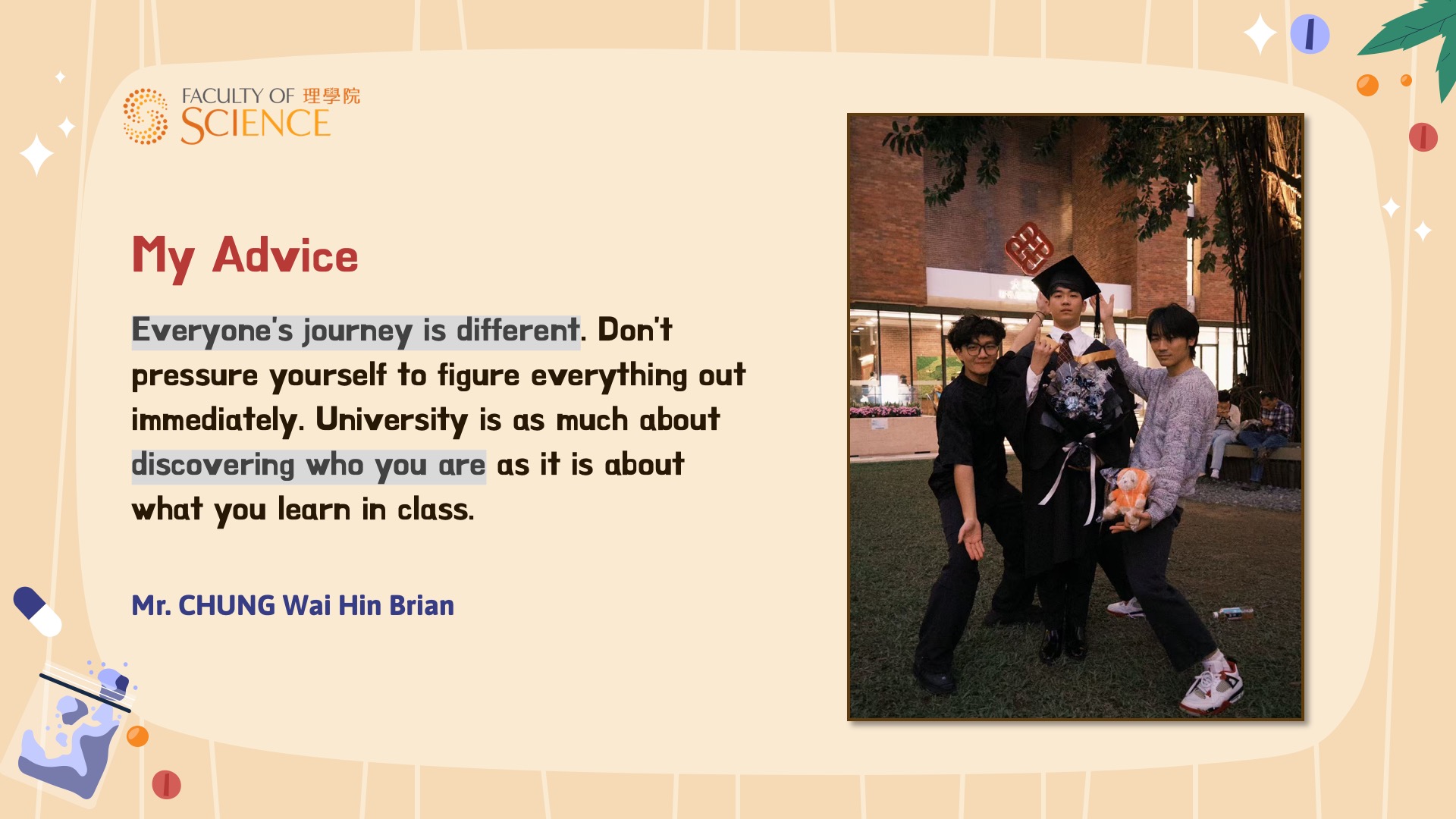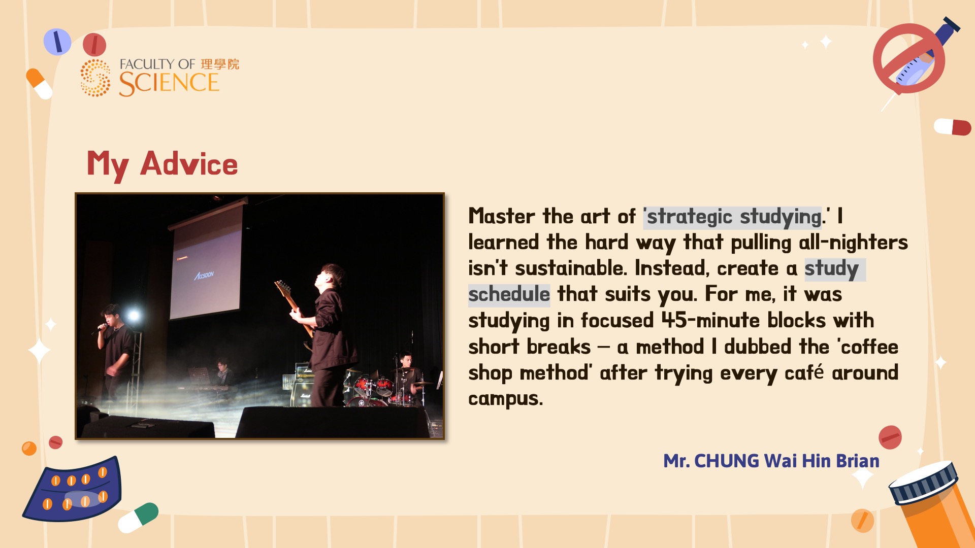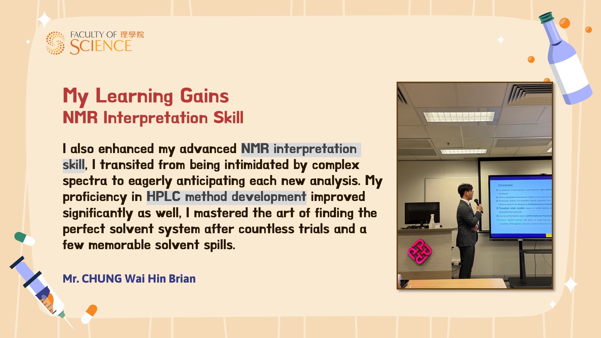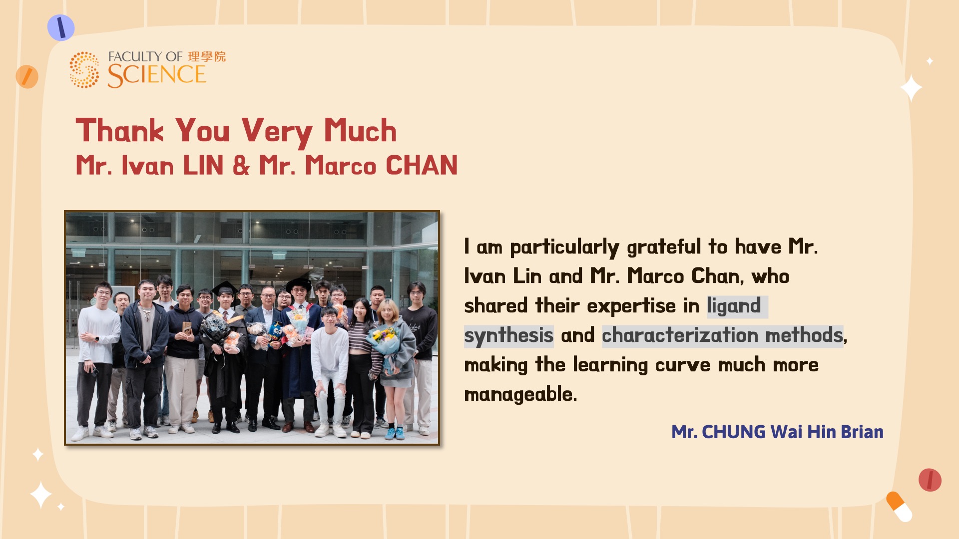 Throughout his project, Brian worked closely with supervisors, mentors, and labmates, sharing equipment, insights, and even snacks during late-night experiments. He also benefited from cross-institutional collaboration through an exchange program. Effective collaboration fosters knowledge exchange, innovation, and support, making it a vital lifelong skill for both professional and personal growth.